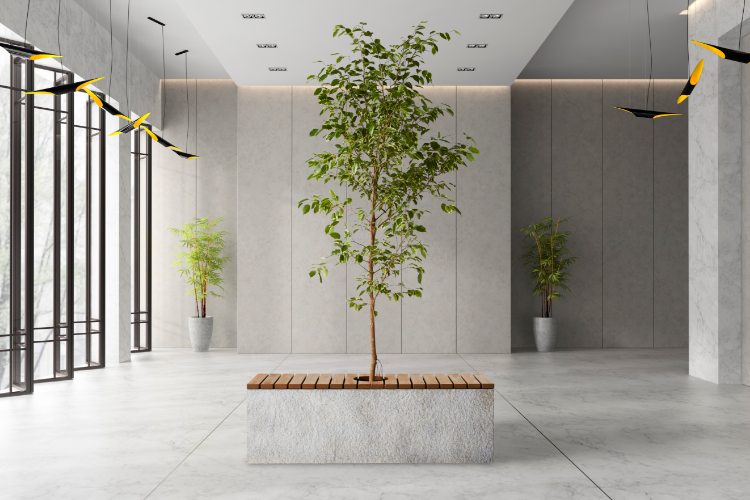 大きなグリーンは、シンボリックツリーとしても有効です。※植物は含まれません。