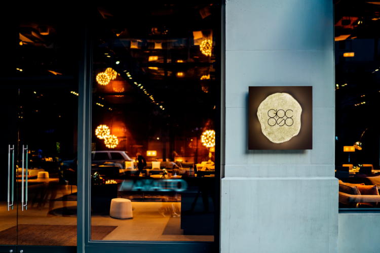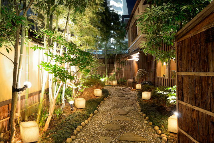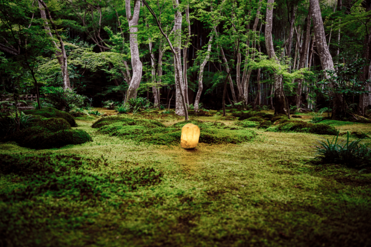 自然石の岩肌を写した繊維強化プラスチックから通した灯は、