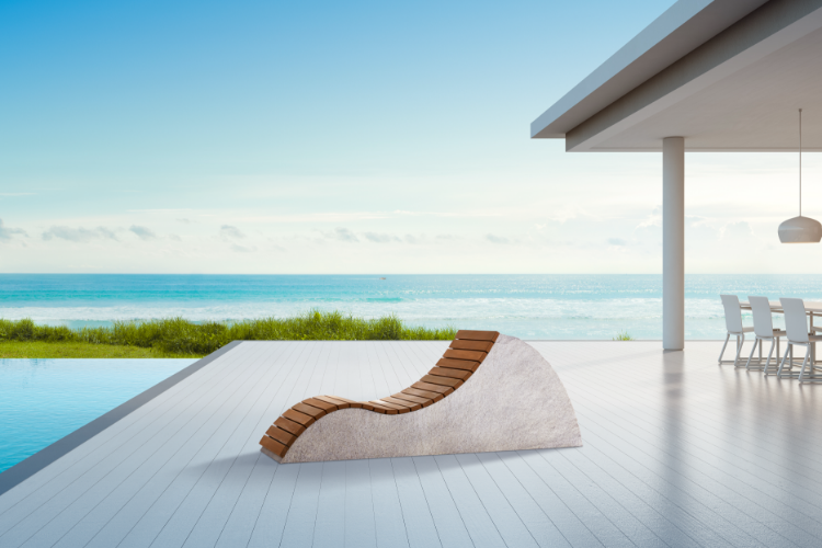 石肌と木材を合わせたキューブタイプの1人掛けスツールです。